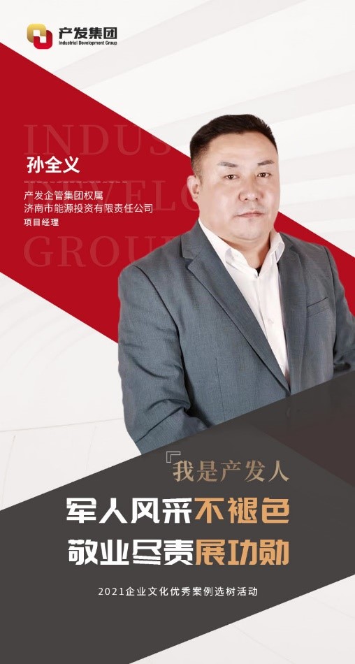 孫全義,現(xiàn)任產(chǎn)發(fā)企管集團權(quán)屬濟南市能源投資有限責(zé)任公司(以下簡稱“能投公司”)項目經(jīng)理。2001年參軍,在部隊期間刻苦訓(xùn)練,聽黨指揮,服從命令。2003年他從部隊光榮退役,隨后加入能投公司。期間曾借調(diào)至濟南市發(fā)改委幫助工作,現(xiàn)負責(zé)能投公司的資產(chǎn)管理工作。
